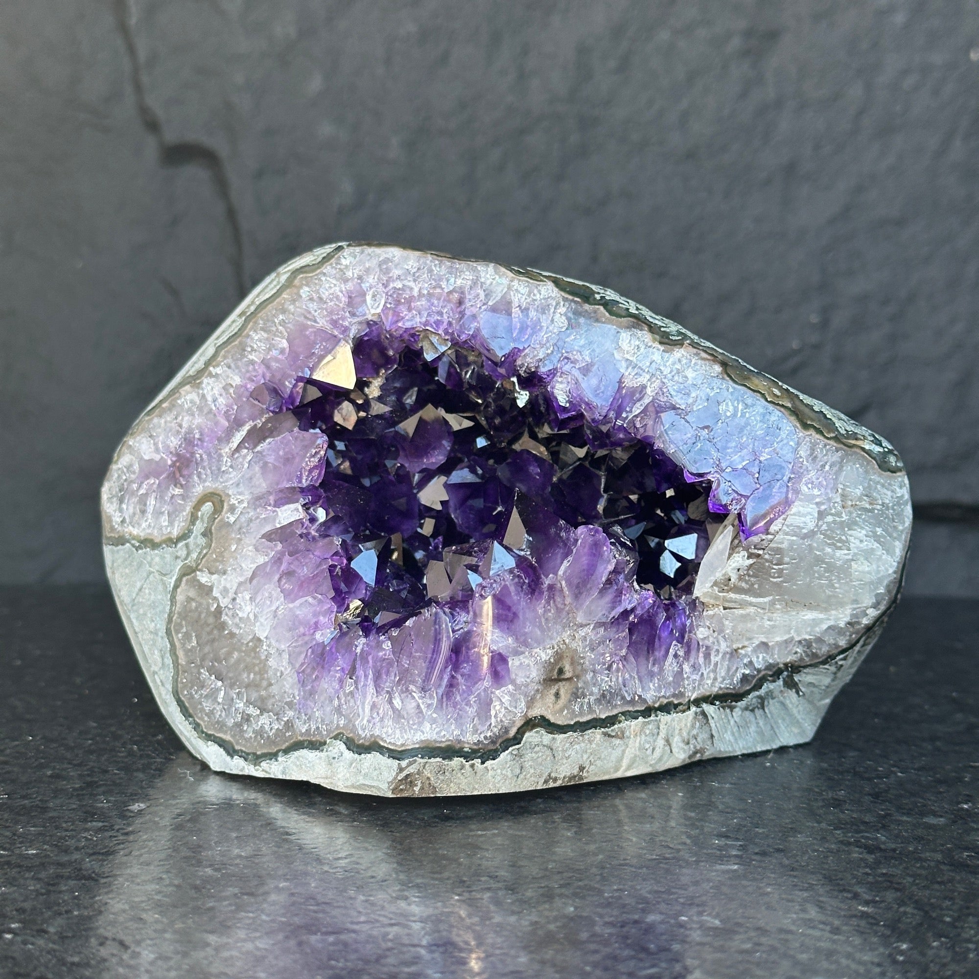 Amethyst with Shiny Crystals, Rare Geode in a strange shape with colorful agate layers, Unique find for collectors