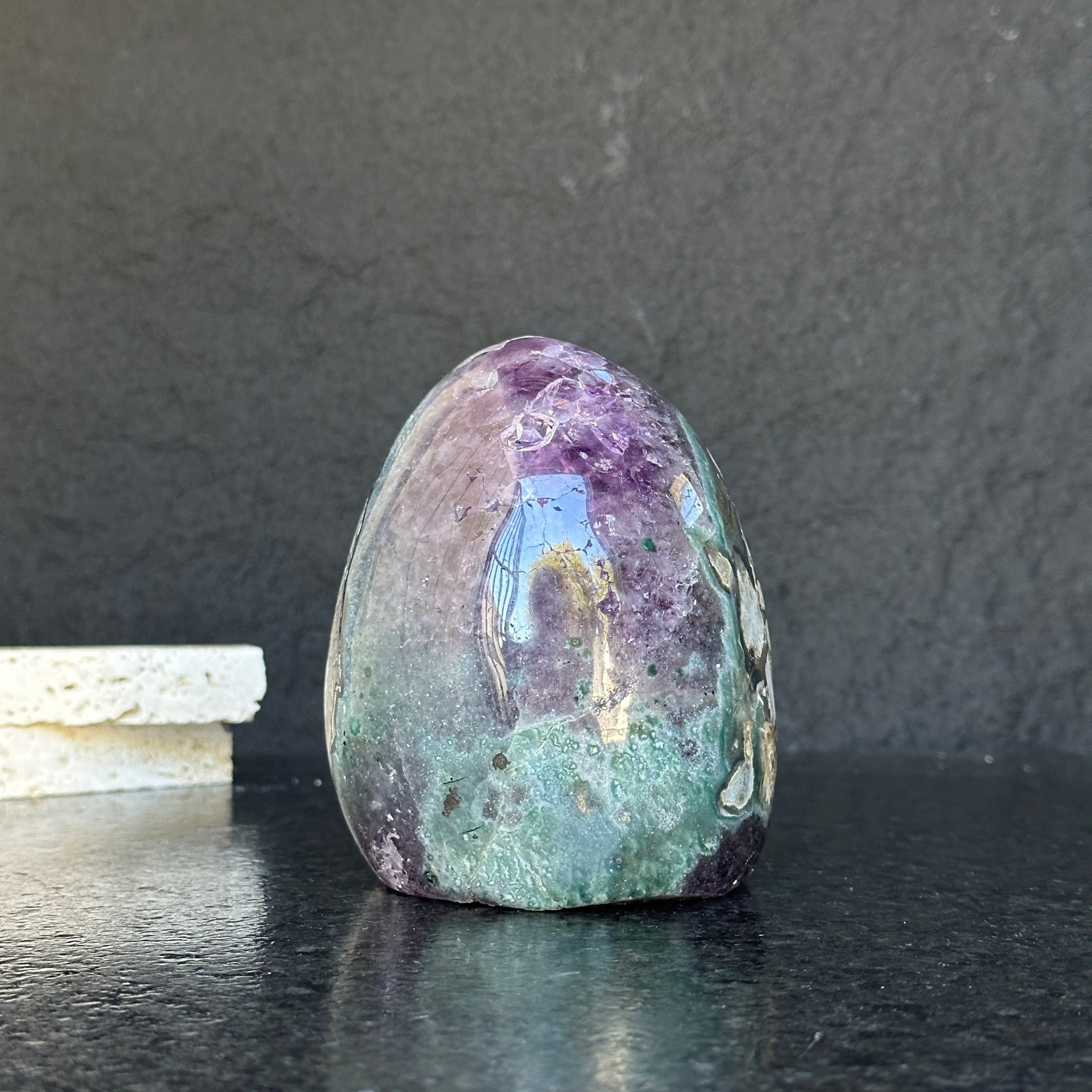 As they are natural stone pieces, they may contain tiny pits and fissures, agate formations, stalactite, calcite, chalcedony, rainbow due to druzy, iron stains that can vary in quantity.