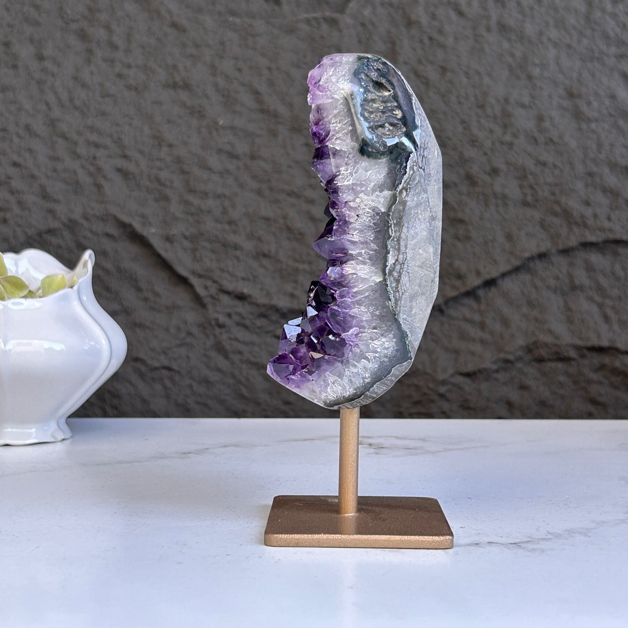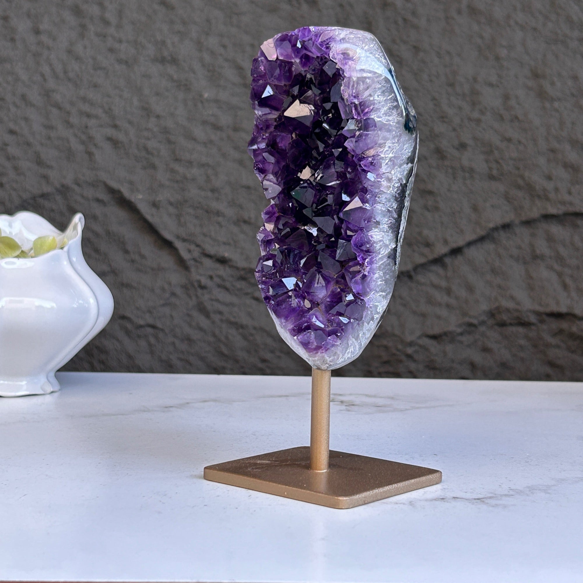 Stunning Natural Amethyst Geode with Metal Stand for Home Decor, XL Amethyst Cave