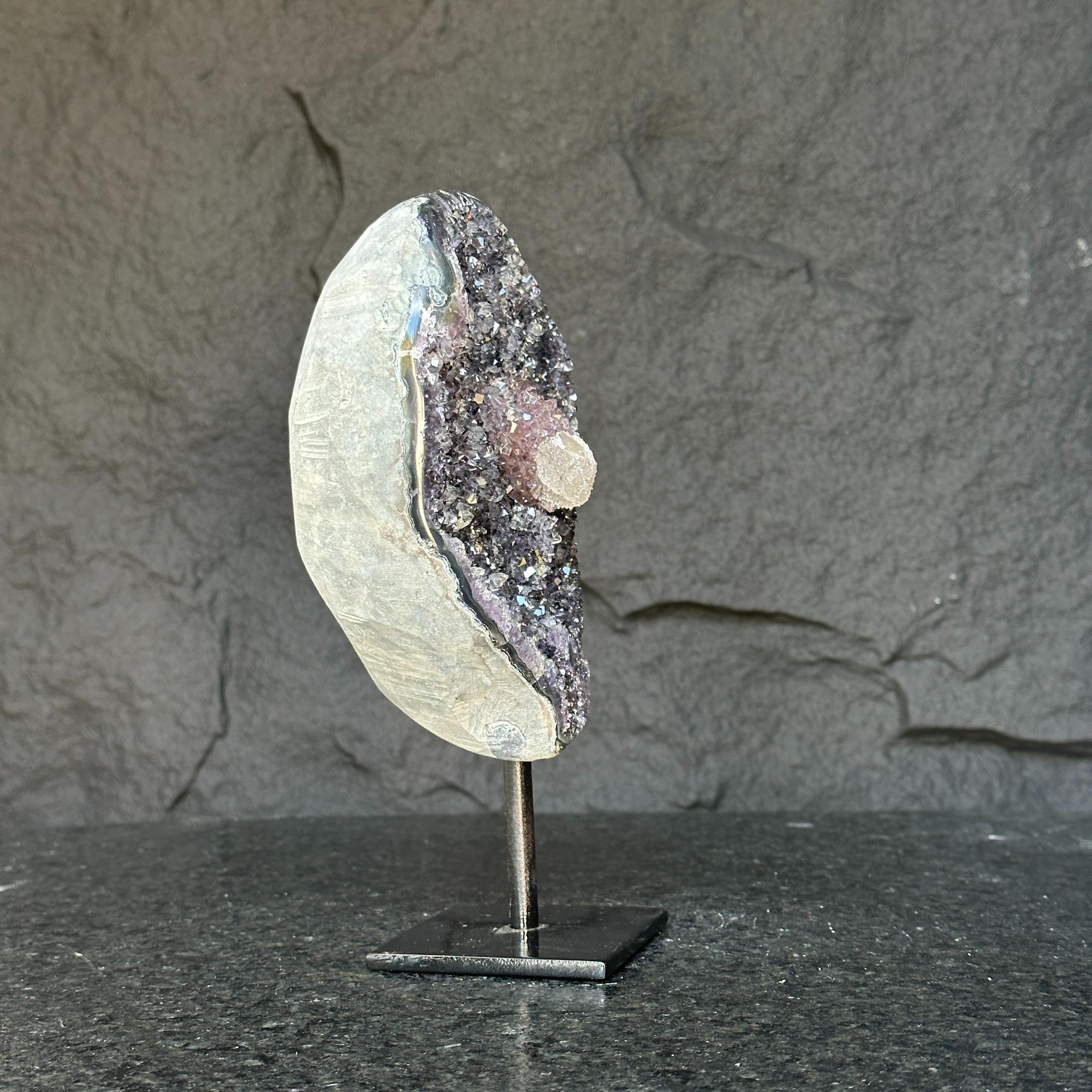 Amethyst with rare formations on a metal pedestal , high quality amethyst crystal from Uruguay