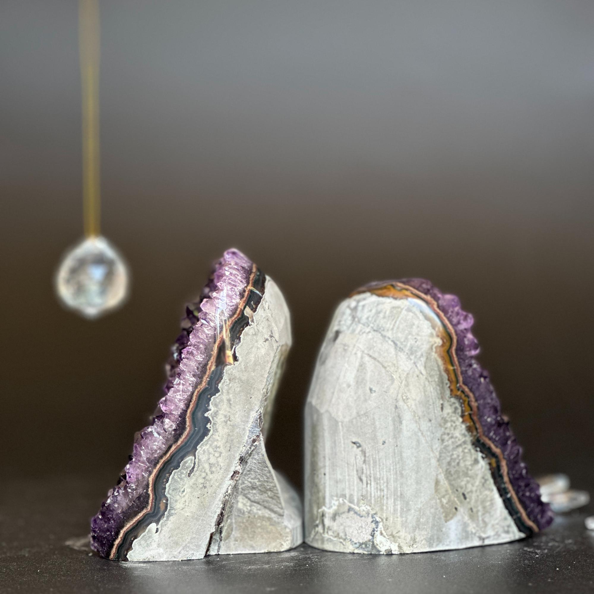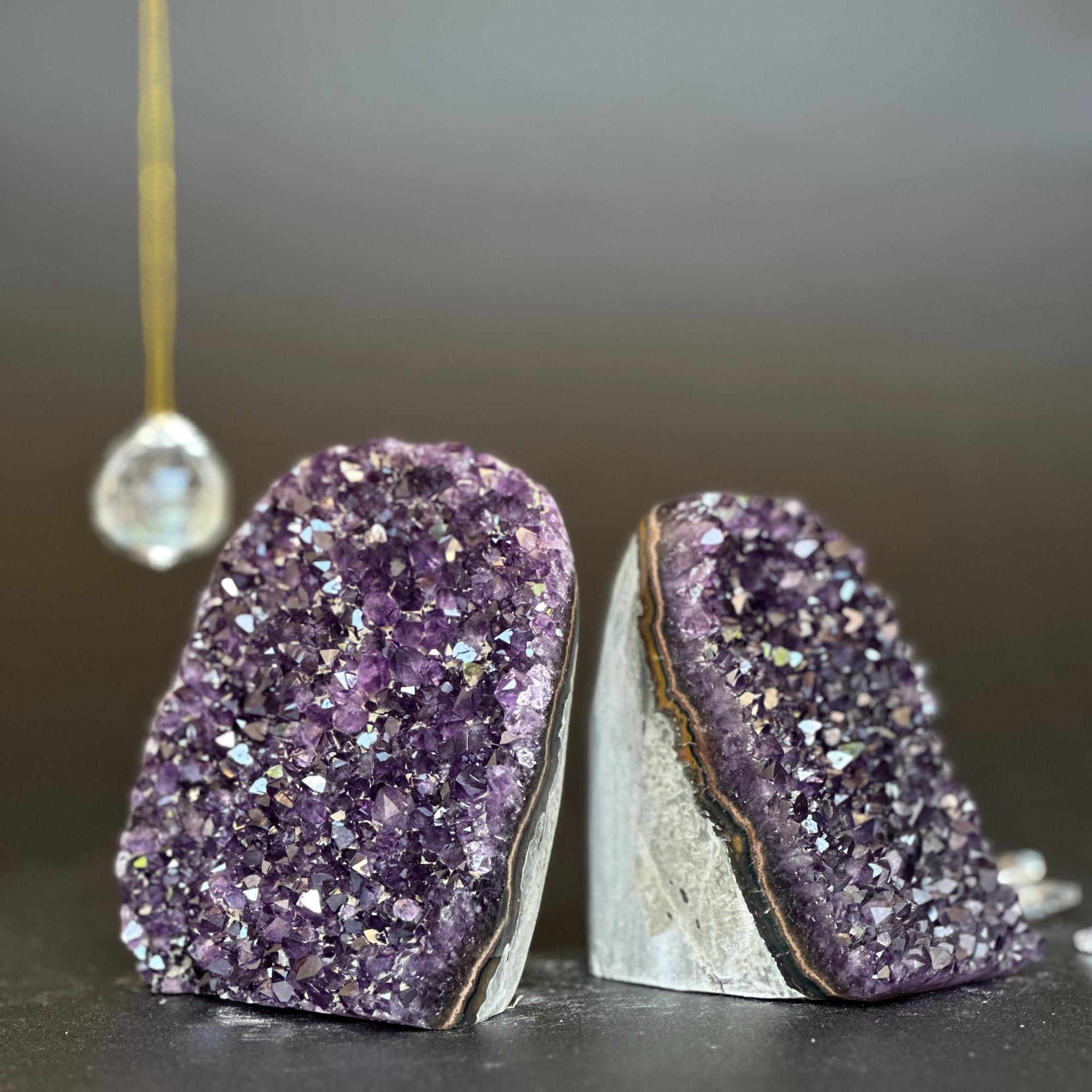 This set of 2 amethyst clusters has the highest quality of the semi precious stones.