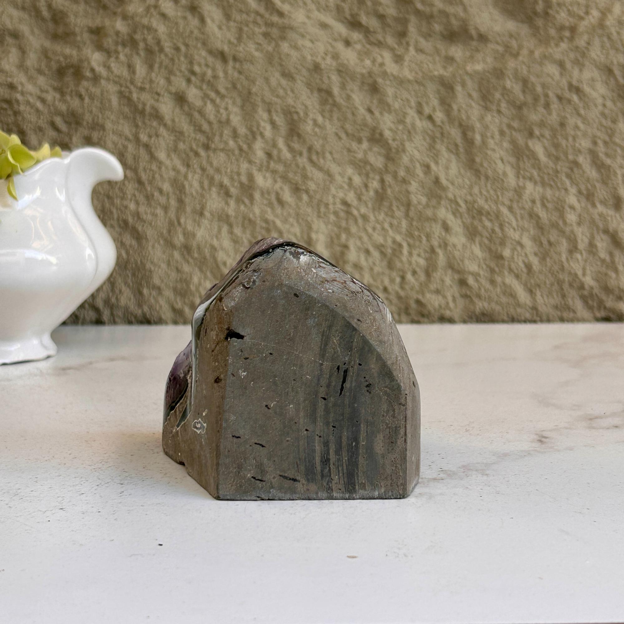 As they are natural stone pieces, they may contain tiny pits and fissures, agate formations, stalactite, calcite, chalcedony, rainbow due to druzy, iron stains that can vary in quantity.